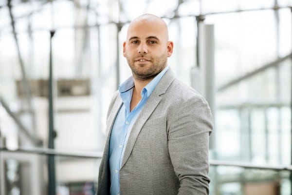 Darstellung von Alessio Altamura, der freundlich lächelt, in einem hellen Umfeld mit weißem Hintergrund.